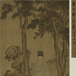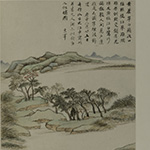 万历四十八年(1620) 纸本 设色 刘靖基捐赠 此册作于庚申年(1620),作者时年六十六岁。 此册曾被庞元济收藏。庞元济(1864-1949),字莱臣,号虚斋,浙江南浔人。为海上首屈一指的藏家,其藏品丰富程度几乎无人能出其右。此册吴湖帆寓目数次,给予很高评价,如在吴氏题董其昌《画禅室小景图》册指出,“七月初六日获见《秋兴八景》册于庞氏(庞莱臣),为大册中至精者”。