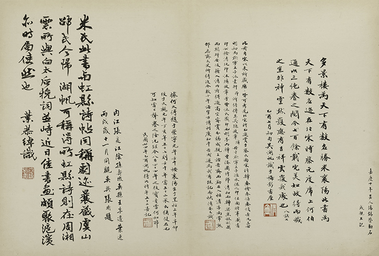 《多景楼诗册》为梅景书屋重宝,吴湖帆对之珍爱逾常,钻研极深,先后多次题跋,对此册创作年代、流传经过、艺术成就皆有详尽的考证论述。