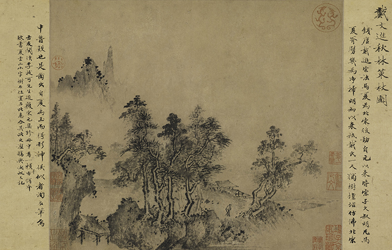 纸本 水墨 戴进(1388-1462),字文进,号静庵、玉泉山人。钱塘(今浙江杭州)人。此图无作者款印。经吴湖帆考证,作者应为戴进。 此图为吴湖帆集配明初画家山水册页之一。吴湖帆对其所鉴藏的书画大多会进行一番考订,或追溯风格渊源,或爬梳流传轨迹,往往言简意赅,切中肯綮,这正是其与一般藏家的不同之处,亦是后人分外重视其藏品的原因。