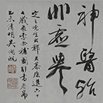 刘定之的装裱工艺独特、技术高超、用料讲究,吴湖帆的许多重要藏品如《梅花喜神谱》册、倪瓒《汀树遥岑图》轴等皆由其亲自操刀,刘氏也因此与书画家结下深厚的友谊。此卷由当时著名肖像画家郑慕康所作,由陆俨少、周炼霞、俞子才、何遂等诸家补阑干树石翎毛,吴湖帆题写卷首,可谓集一时之胜。